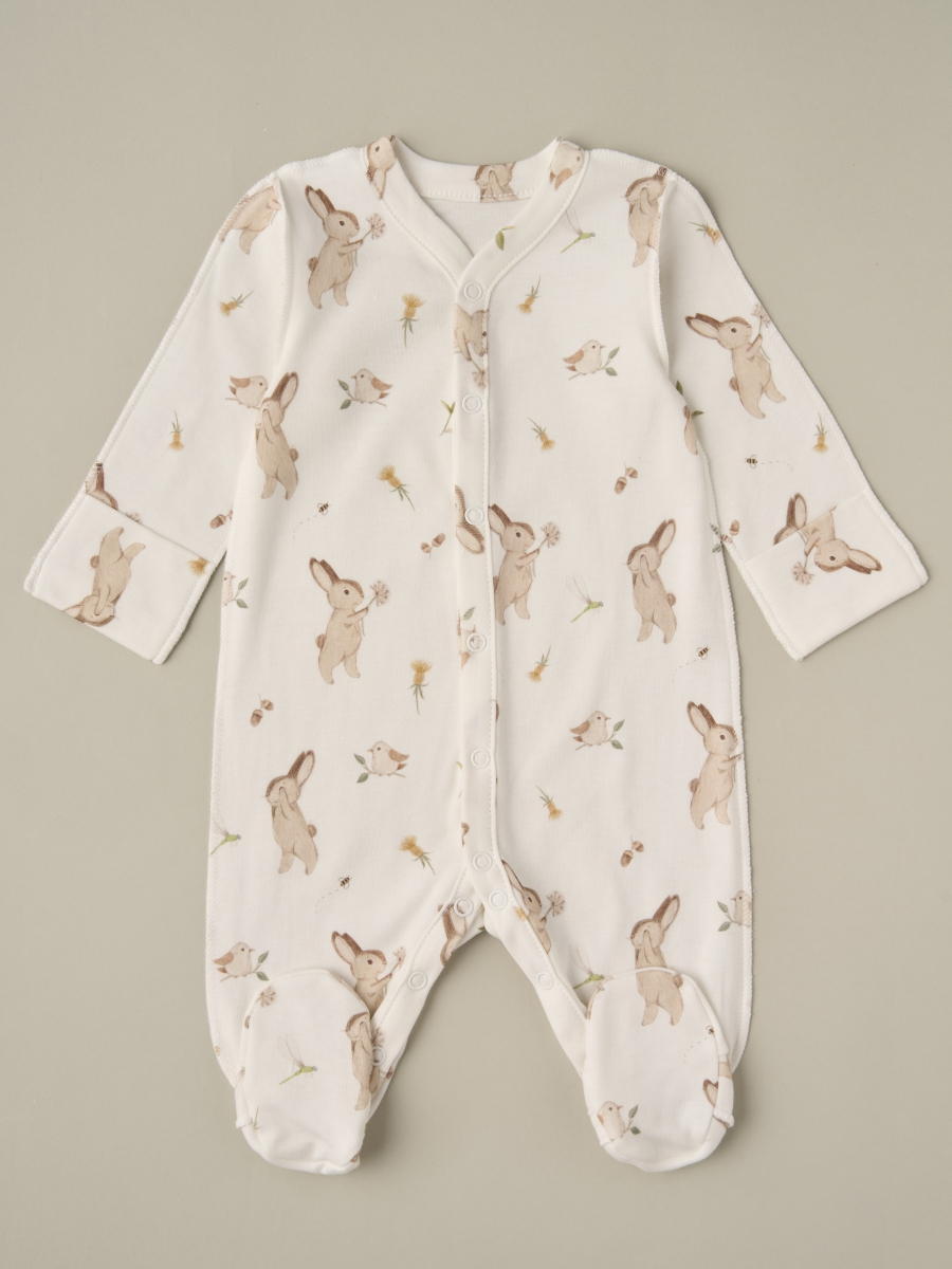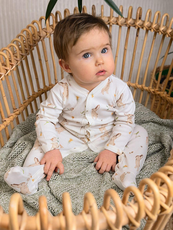 Комбинезон на кнопках Little Star Зайки с птичками 30032 (ЧЗ-мз) крем 68
