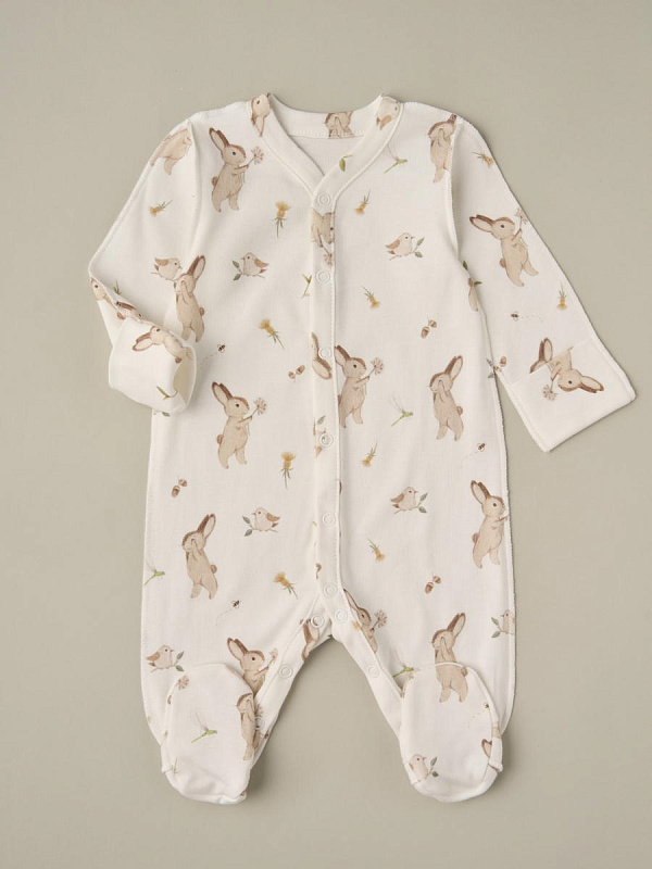 Комбинезон на кнопках Little Star Зайки с птичками 30032 (ЧЗ-мз) крем 74
