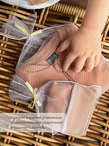 Комбинезон для детей изготовлен в Санкт-Петербурге вручную, он подойдёт для носки круглый год в качестве одежды для новорождённых, мягкой пижамки, дышащей поддевы или самостоятельной одежды. Бережно упакованный в фатиновый мешочек, комбинезон Mjolk станет полезным подарком родным и близким!