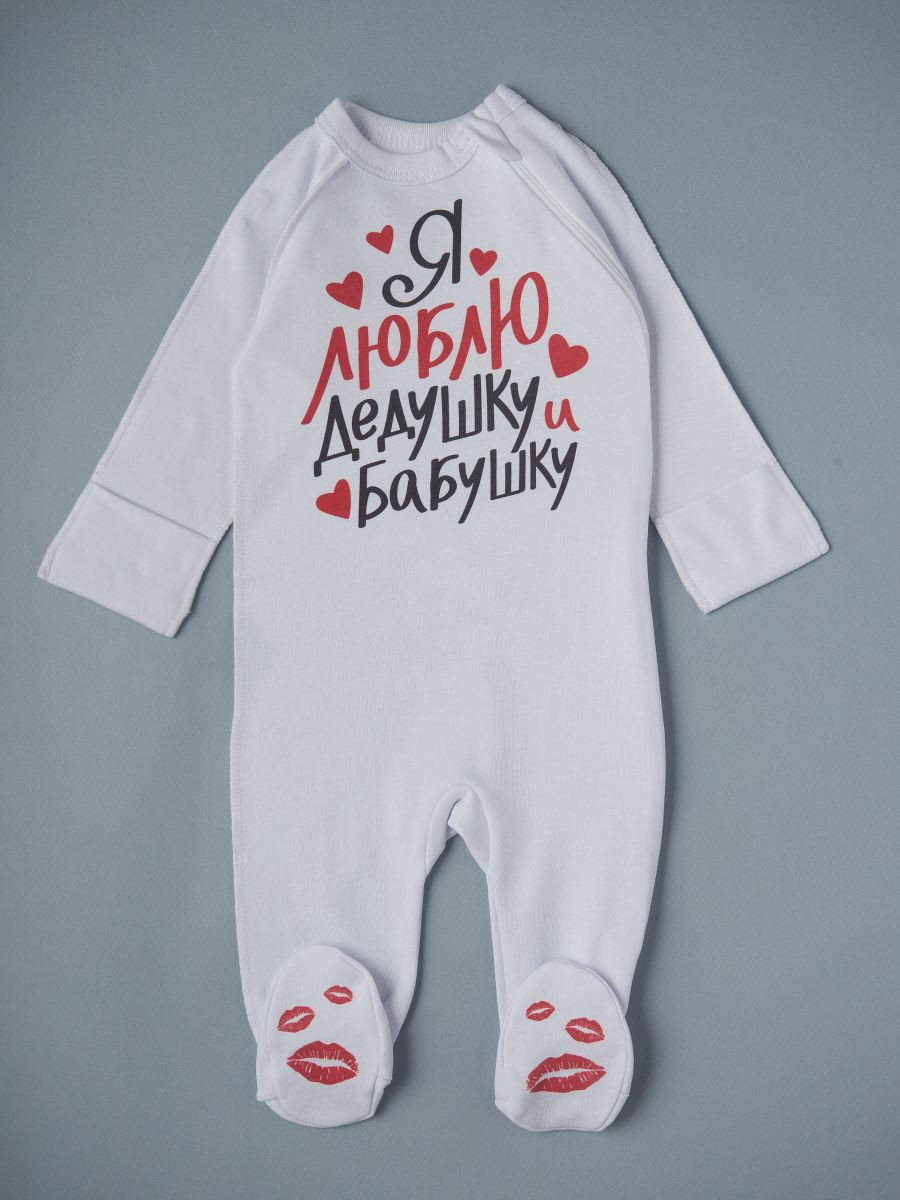 Комбинезон на молнии Little Star 0208 я люблю бабушку и дедушку, белый 74