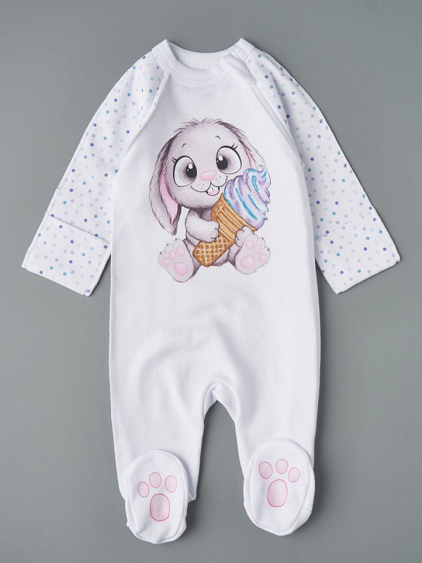 Комбинезон на молнии Little Star 0208 зайка с мороженым, белый 62
