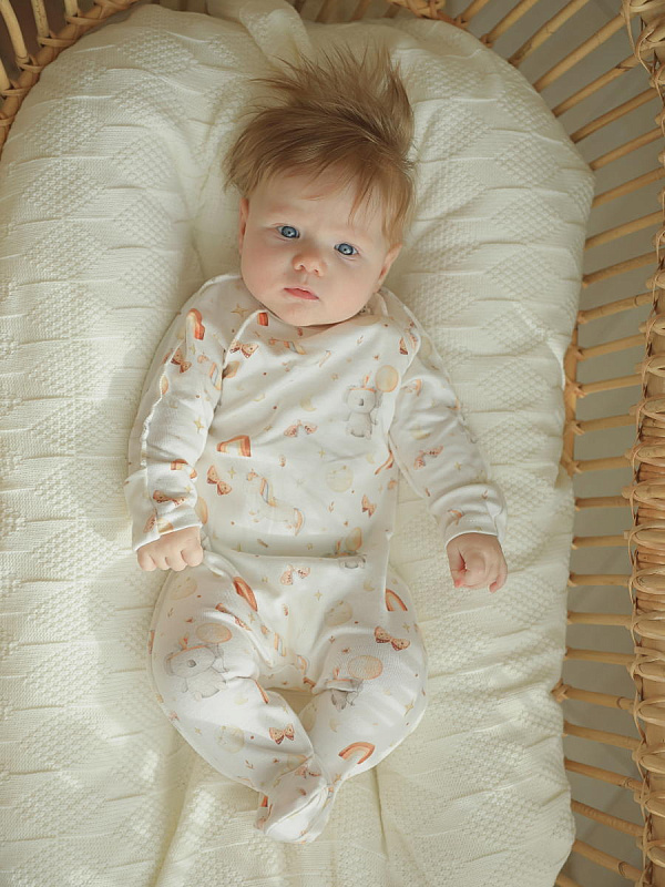 Комбинезончик для малыша "Little Star" — это слип для детей от рождения до года, выполненный из мягкого трикотажа из 100% хлопка футер 2 нитка, премиального качества пенье – гипоаллергенный, очень мягкий и приятный на ощупь. Комбинезон имеет длинный рукав и закрытые ножки, что делает его идеальным для использования в домашних условиях или в течение летнего периода. Комбинезон для новорожденных на молнии от бренда Little Star – прекрасное дополнение для ежедневного базового гардероба Вашего малыша. Универсальные рисунки и милые надписи подойдут как для девочки, так и для мальчика. Мы заботливо подошли к грудничкам, для них размеры 56 и 62 со швами наружу, а также скрытые в манжетах антицарапки. Слипы для малышей имеют манжеты двухслойные, из плотного трикотажа – не потеряют форму спустя множество стирок и использования царапок. Для детей старшего возраста, от 68 размера – ручки открыты, а мягкие швы расположены внутри изделия. Пяточки костюма закрыты во всех размерах. На обратной стороне для дополнительной фиксации вшита мягкая резиночка. Она фиксирует ножку как в носочках, поэтому малышу будет комфортно активно двигаться в течении дня. Детский слип на молнии – на шее имеется защитный язычок, а изнутри по всей длине трикотажная планка, поэтому, молния не соприкасается с кожей малыша, что важно при выборе одежды для новорожденных. Также обращаем внимание на то, что молния вшита в боковой шов – поэтому, она практически незаметна. Костюмы и комбинезоны подойдут для круглогодичного использования, в качестве летней одежды, поддевы под теплый осенний и зимний комбинезон, домашней одежды, пижамы для сна или на выписку и конечно же для фотосессии. С наилучшими пожеланиями Вам и Вашему маленькому Чуду!