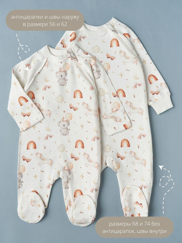 Комбинезон на молнии Little star Коалы и Единороги 0208 (ЧЗ-мз) крем 74