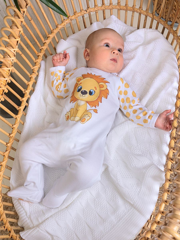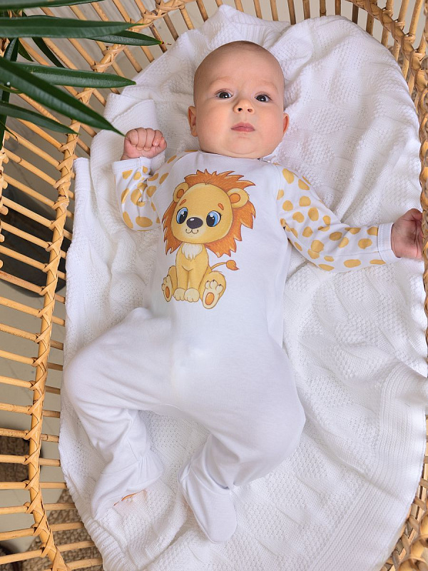 Комбинезон на молнии Little Star Львенок 0208 (ЧЗ-мз) белый 74