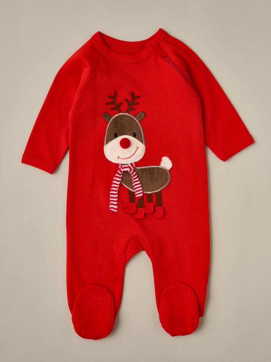Комбинезон застёгивается на удобную застёжку, что позволяет легко надевать и снимать его. Этот новогодний комбинезон станет отличным нарядом для вашего малыша на празднике.