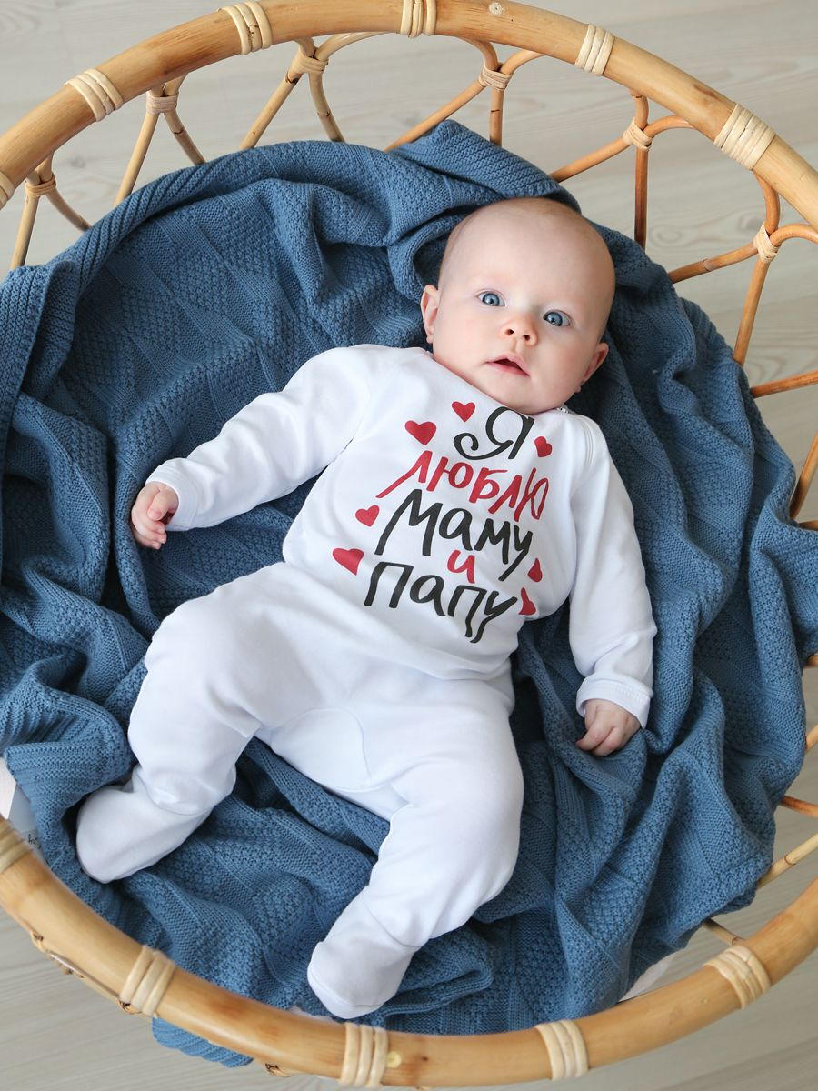 Комбинезон на молнии Little Star Я люблю маму и папу 0208 (ЧЗ-мз) белый 68