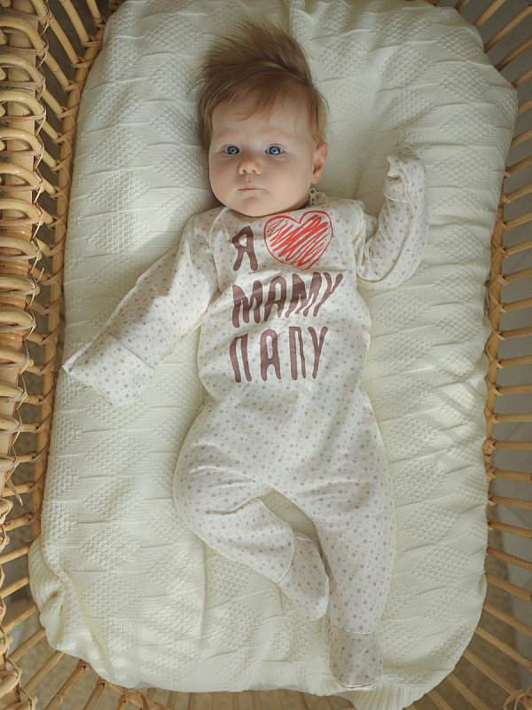 Данная модель отличается оригинальным дизайном. Благодаря прикольной надписи слип отлично подходит для подарка и фотосессий! Комбинезон оснащен застежкой молнией.