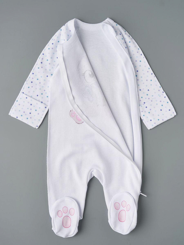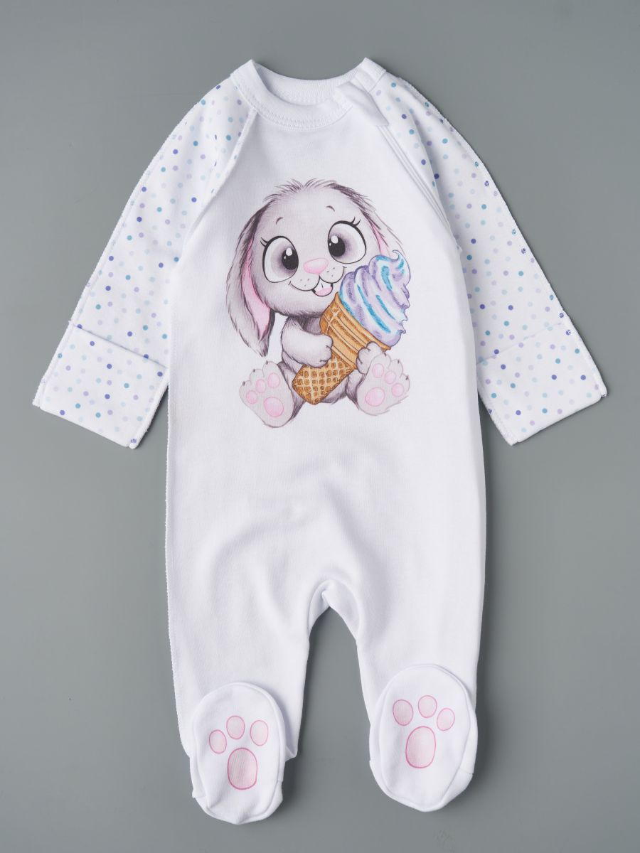 Комбинезон на молнии Little Star Зайка с мороженым 0208 (ЧЗ-мз) белый 56