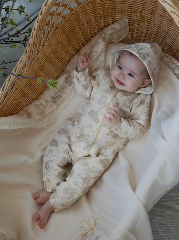 Детский комбинезон из муслина. Муслин — это тонкая ткань, которая отличается легкостью и воздушностью. Это 100% натуральный хлопковый материал.Муслин хорошо пропускает воздух, впитывает влагу и приятен к коже.Летний комбинезон из муслина станет идеальной одеждой для малышей в жаркие дни.