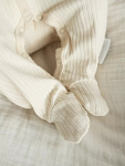 Комбинезон выполнен из мягкой хлопковой ткани, с застежкой на кнопках спереди. Модель свободного прямого силуэта, быстро одевается и снимается. Легкий хлопковый материал изделия позволяет коже малыша дышать. Подходит для летних прогулок, а также для повседневной носки.