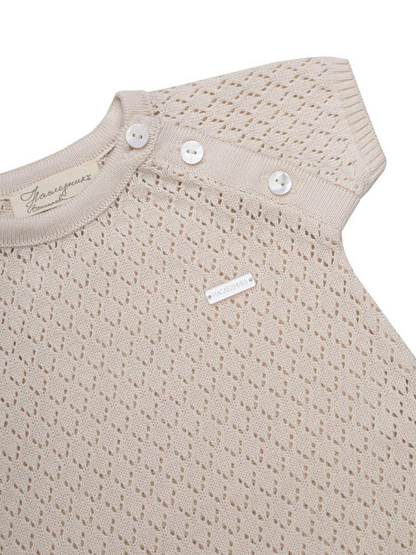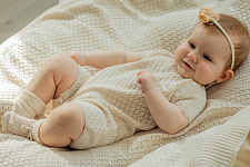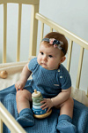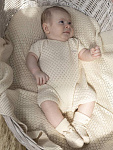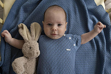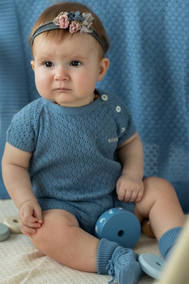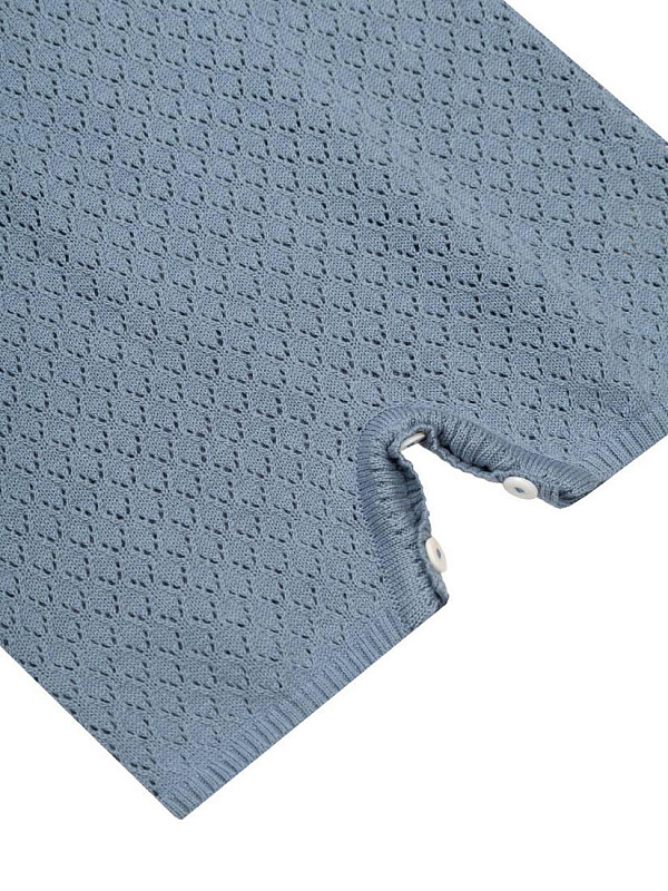 Комбинезон "Ромбы" выполнен из 100% хлопка, что обеспечивает мягкость и комфорт для нежной кожи малыша. Материал отличается дышащей структурой, идеально подходящей для любого времени года. Цвет изделия – глубокий индиго, который сохраняет свою насыщенность даже после многократных стирок. Дизайн комбинезона украшен узором в виде ромбов, придающим оригинальный и современный вид. Фактура ткани вязано-перфорированная, что делает изделие особенно приятным на ощупь и визуально привлекательным. Конструкция предусматривает удобные кнопки на плече для легкого переодевания, что особенно важно для малышей и родителей. Короткие рукава и свободный крой не сковывают движений, обеспечивая максимальную свободу и комфорт в носке. Комбинезон "Ромбы" подходит как для ежедневной носки, так и для особых случаев. Изделие легко стирается, быстро сохнет и сохраняет форму после ухода.