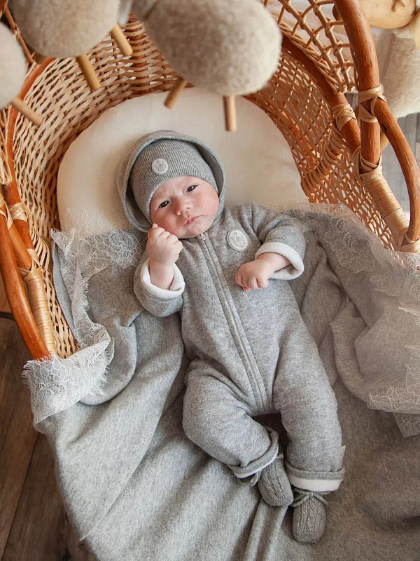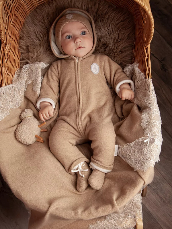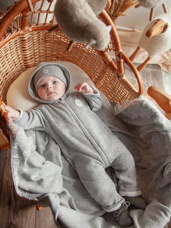 Что может быть теплее шерсти и нежнее шелка? Только наша коллекция из шерсти тонкорунного мериноса и беби кашемира. Двухслойный комбинезон на молнии. Благодаря уникальному составу: 70% шерсти мериноса и 30%кашемира, комбинезон такой нежный, невесомый,и в то же время тёплый. Его можно использовать как верхнюю одежду в межсезонье и как поддеву зимой. Имеет удобную застёжку на молнии спереди, благодаря который можно быстро переодеть малыша.