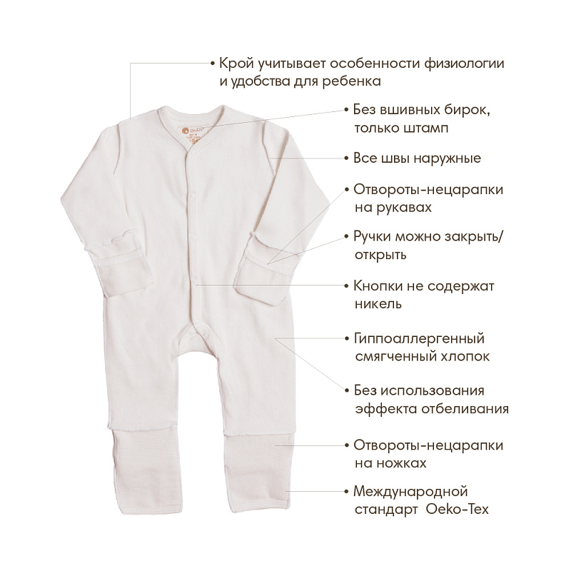 Комбинезон Olant Baby Open для новорожденных Nature белый 56Нет оценокХарактеристики