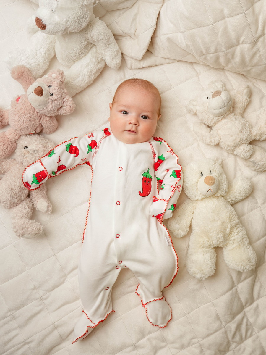 Комбинезон "Перчики" для новорожденного сочетает в себе комфорт, практичность и стиль, делая его идеальным выбором для вашего малыша.