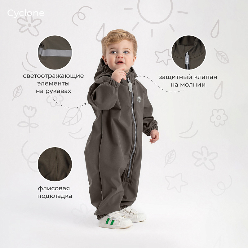 Детский комбинезон RANT CYCLONE подарит малышу невероятное ощущение уюта и тепла. Модель покорит вас: инновационным влагоотталкивающим и ветронепроницаемым материалом софтшелл, тщательно продуманными деталями кроя, лаконичным исполнением, комфортным лекалом.