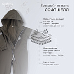 <li>материал софтшелл изготовлен по типу сэндвича: верхний слой - ветрозащитный, эластичный, плотный; второй слой - мембранный, влагозащитный (свободно пропускает влагу и воздух изнутри, но задерживает их снаружи, с улицы); внутренний слой - мягкий флисовый</li>