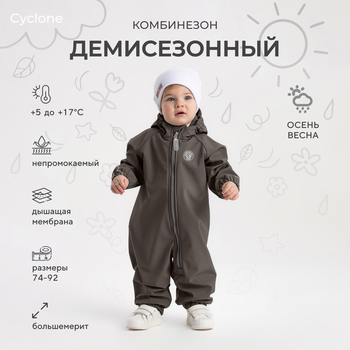 Детский комбинезон RANT CYCLONE подарит малышу невероятное ощущение уюта и тепла. Модель покорит вас: инновационным влагоотталкивающим и ветронепроницаемым материалом софтшелл, тщательно продуманными деталями кроя, лаконичным исполнением, комфортным лекалом.