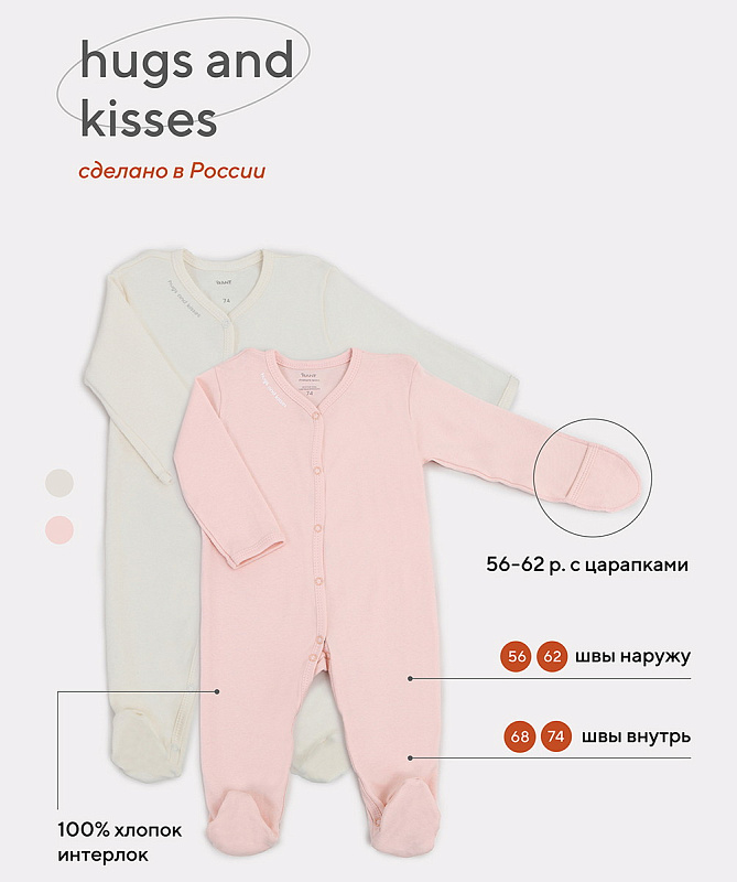 - Свежая коллекция Hugs and kisses покажет всю вашу нежность и заботу. Актуальные однотонные расцветки, лаконичный дизайн, качественная фурнитура в тон и хлопок премиум класса (интерлок-пенье)