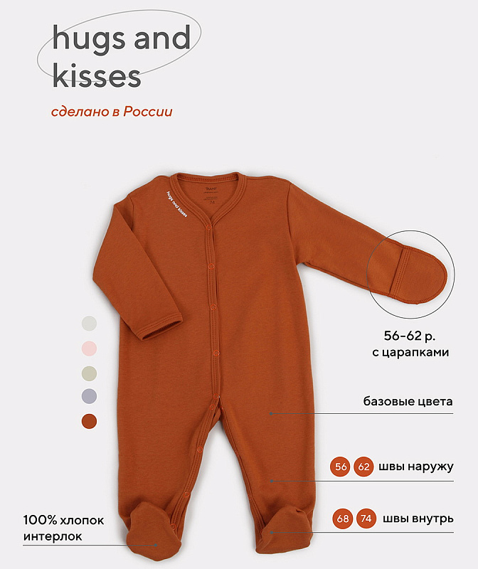 - Свежая коллекция Hugs and kisses покажет всю вашу нежность и заботу. Актуальные однотонные расцветки, лаконичный дизайн, качественная фурнитура в тон и хлопок премиум класса (интерлок-пенье)