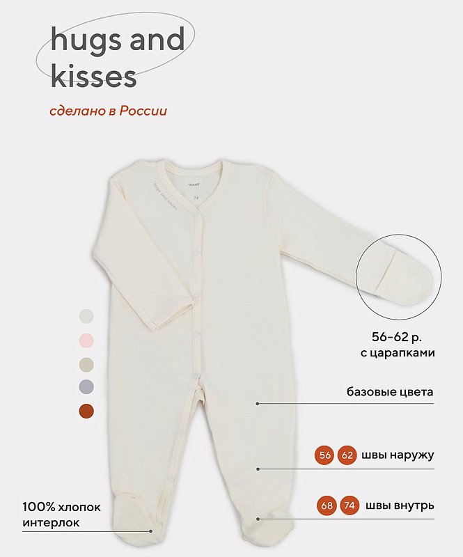 - Свежая коллекция Hugs and kisses покажет всю вашу нежность и заботу. Актуальные однотонные расцветки, лаконичный дизайн, качественная фурнитура в тон и хлопок премиум класса (интерлок-пенье)
