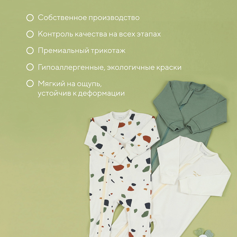 Набор Rant Mosaic с особой деликатностью создан для новорожденных и малышей постарше. Базовые расцветки, устойчивые принты, лаконичное исполнение, премиальные ткани - визитная карточка нашей одежды.
