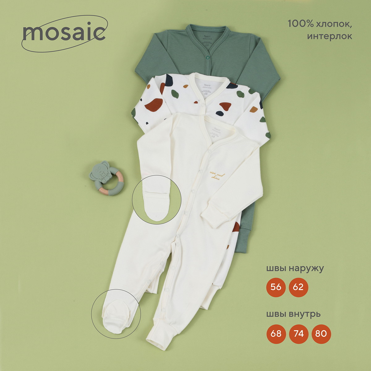Одежда RANT MOSAIC с особым вниманием создана для новорожденных и малышей постарше. Базовые цвета, актуальный мозаичный принт, лаконичное исполнение, премиальные ткани - визитная карточка наших моделей.