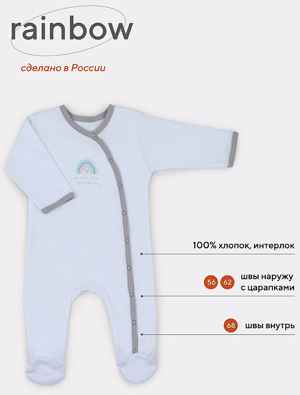 Комбинезон (слип) из этой коллекции станет настоящим украшением гардероба вашего крохи. Модель в размерах 56 и 62 выполнена швами наружу, чтобы не раздражать нежную кожу, и дополнена царапками, чтобы кроха не поранил себя внезапно отросшими ноготочками. Благодаря кнопочкам, расположенным по всей длине, вам будет комфортно переодевать малыша.