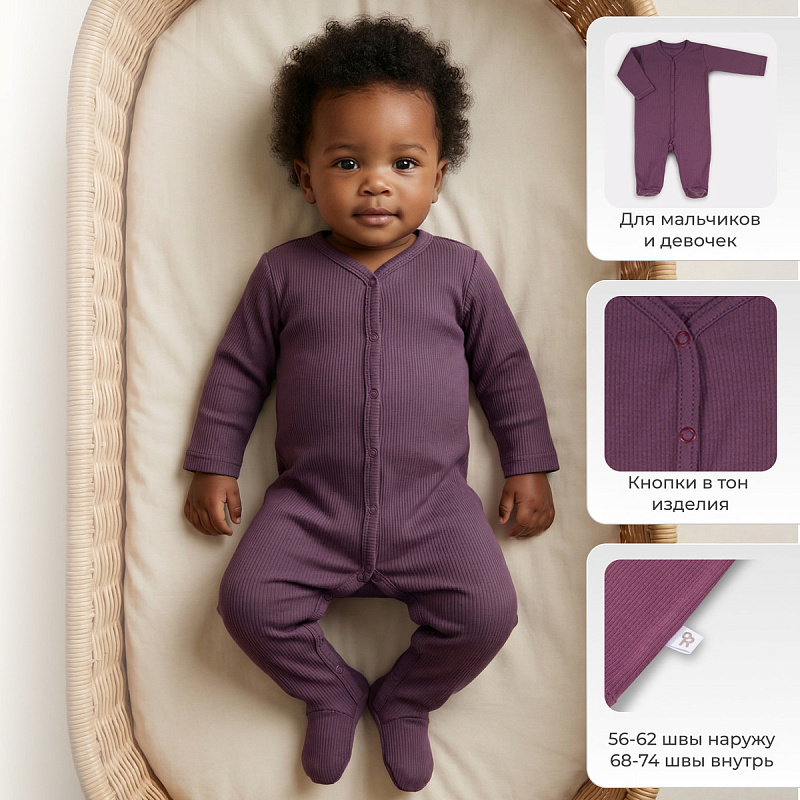 Комбинезон Rant Ribelle на кнопках 1194 1194/3 plum, закрытая ножка 62