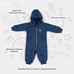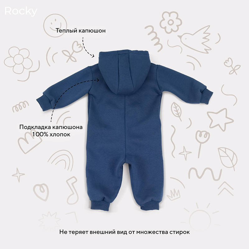 - комбинезон выполнен из гипоаллергенных и невероятно приятных на ощупь тканей. Основной материал - нежный и теплый футер, подклад - интерлок-пенье