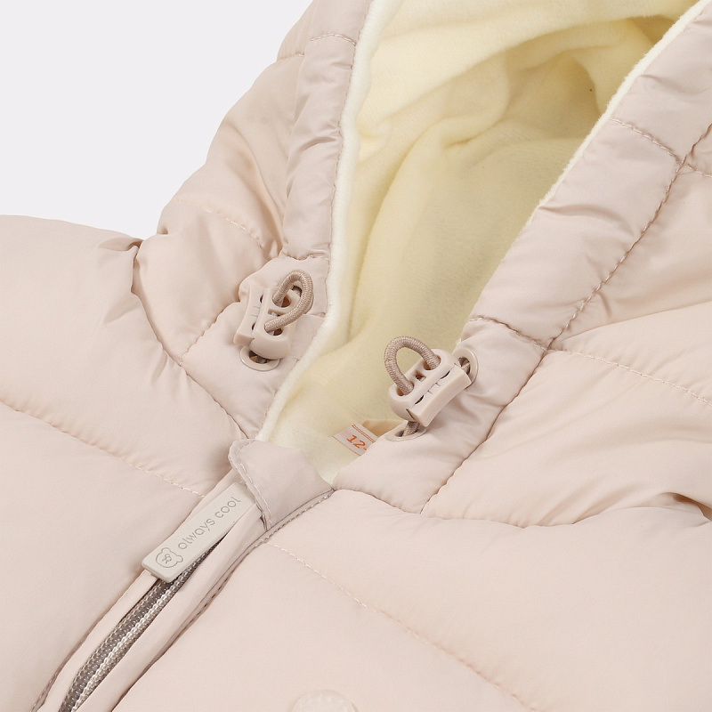 модель выполнена из плащевой ткани с покрытием soft touch. Подобный материал тактильно приятен, максимально долговечен, обладает высокой устойчивостью к механическим повреждениям, обладает водо-, ветронепроницаемыми и грязеотталкивающими свойствами, прекрасно сохраняет тепло и отводит влагу, а значит малыш не будет ни потеть, ни мерзнуть.