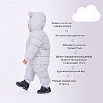 модель выполнена из плащевой ткани с покрытием soft touch. Подобный материал тактильно приятен, максимально долговечен, обладает высокой устойчивостью к механическим повреждениям, обладает водо-, ветронепроницаемыми и грязеотталкивающими свойствами, прекрасно сохраняет тепло и отводит влагу, а значит малыш не будет ни потеть, ни мерзнуть.
