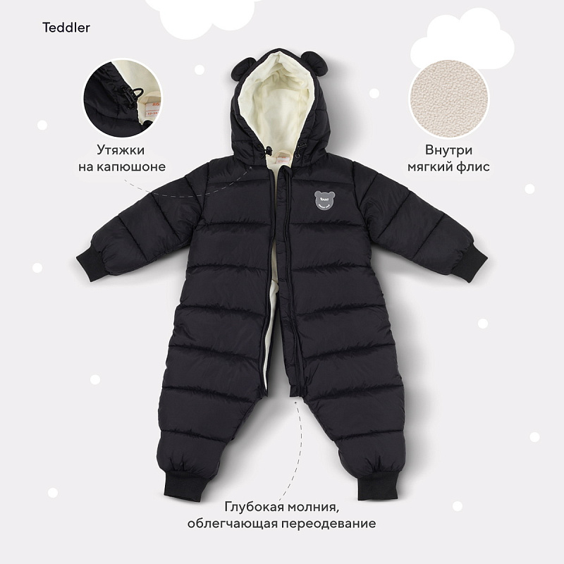 штанины дополнены накидными манжетами, защищающими от холода малыша, пока он не ходит самостоятельно