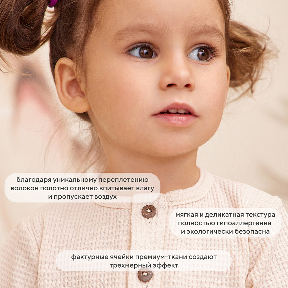 Каждый образ, созданный с помощью коллекции, хочется потрогать взглядом. И неудивительно, ведь особая магия моделей WAFFY это: деликатные спокойные расцветки (мятный, небесно-голубой, кофе с молоком, миндальный, крем-брюле), натуральные премиальные ткани (фактурный вафельный трикотаж - тактильно приятный материал, прекрасно впитывающий влагу, но пропускающий воздух), качественная фурнитура, комфортное лекало, лаконичное исполнение, сочетающиеся между собой изделия.