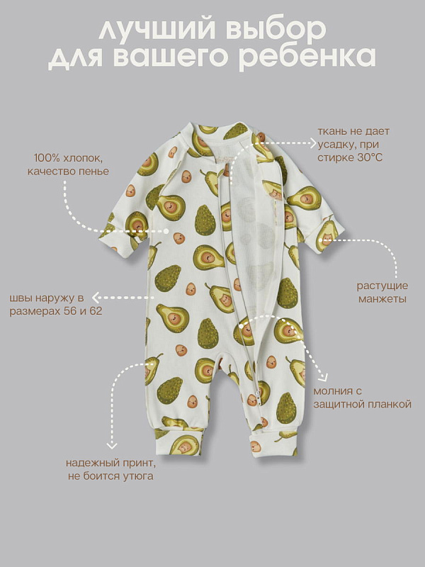 Комбинезон растущий на молнии Little Star Авокадо 13016 (ЧЗ-мз) крем 56