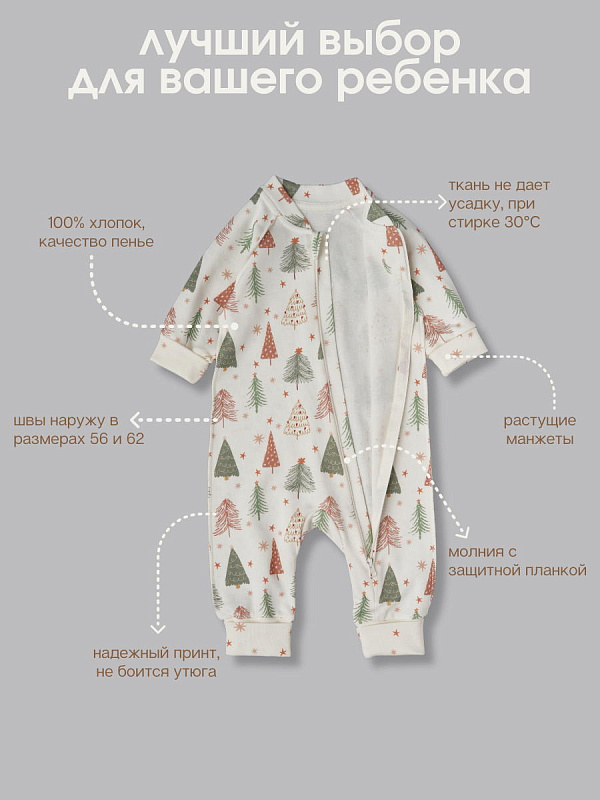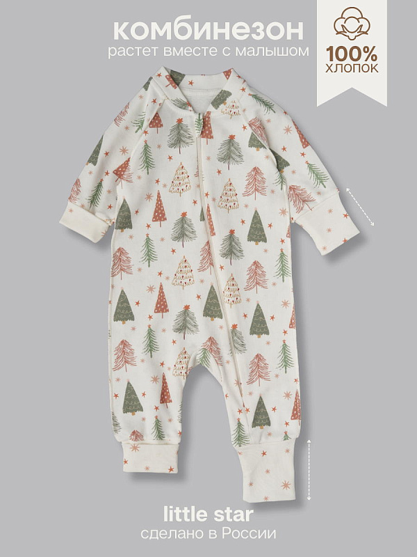 Комбинезон растущий на молнии Little Star интерлок 13016 (мз) елочки со звездочками на креме, крем 62Нет оценокХарактеристики