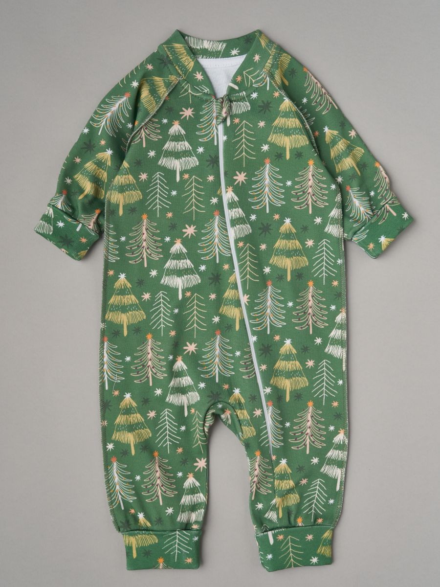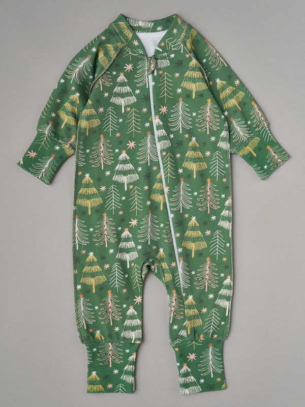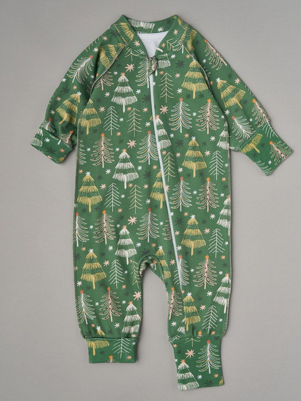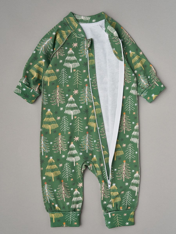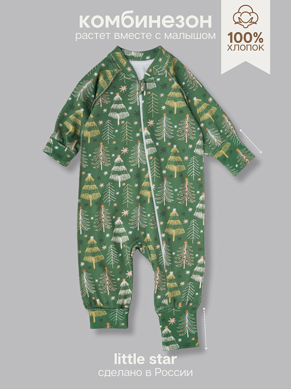 Комбинезон растущий на молнии Little Star интерлок 13016 (мз) елочки со звездочками на зеленом, зеленый 62