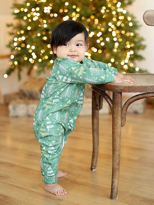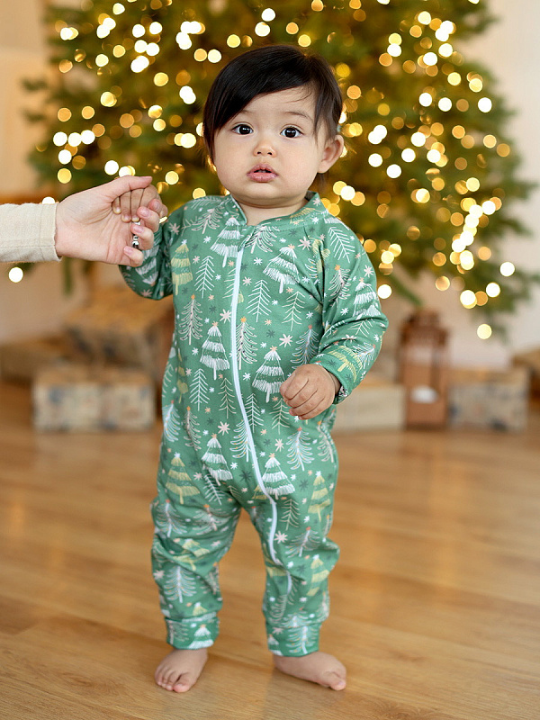 Комбинезон растущий на молнии Little Star интерлок 13016 (мз) елочки со звездочками на зеленом, зеленый 68