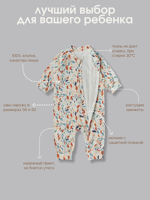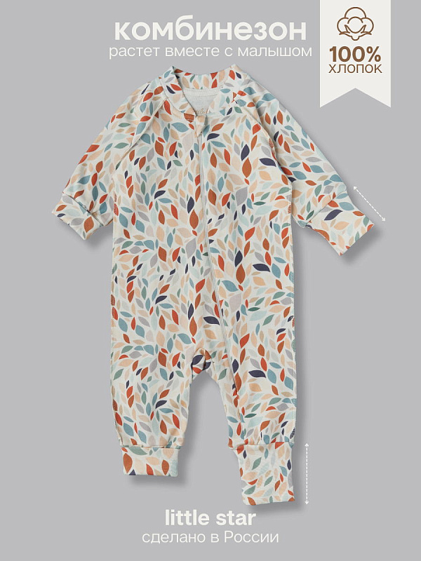 Комбинезон растущий на молнии Little Star интерлок 13016 (мз) листочки, крем 92Нет оценокХарактеристики