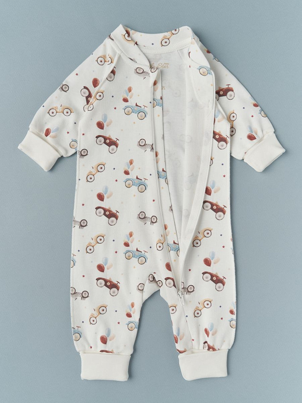 Комбинезон растущий на молнии Little Star интерлок 13016 (мз) машинки, крем 62