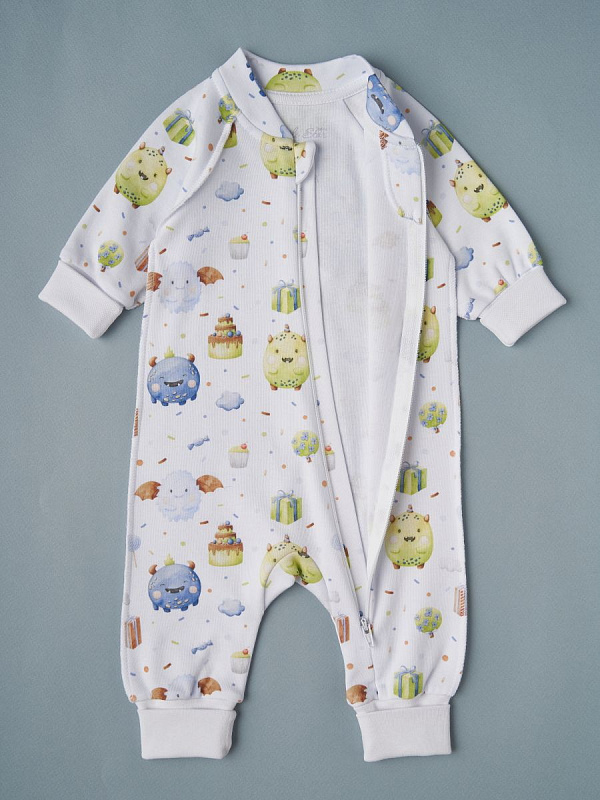 Комбинезон растущий на молнии Little Star интерлок 13016 (мз) новогодние зайки, белый 62Нет оценокХарактеристики