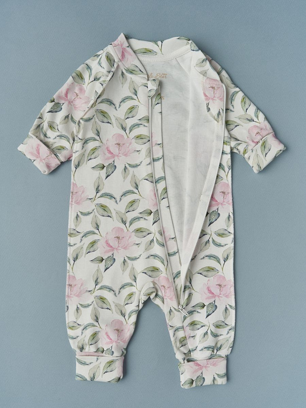 Комбинезон растущий на молнии Little Star интерлок 13016 (мз) пионы, крем 56