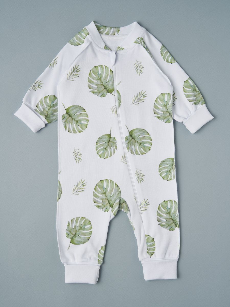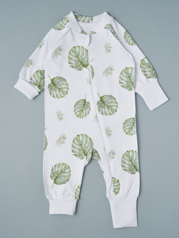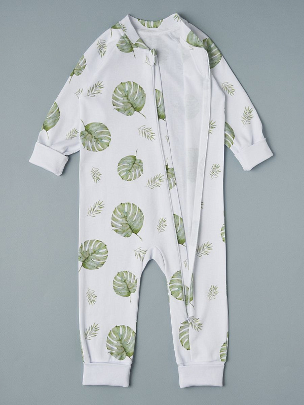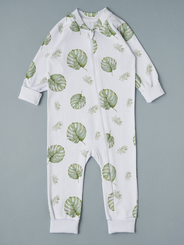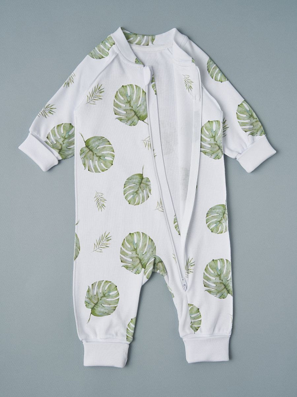 Комбинезон растущий на молнии Little Star интерлок 13016 (мз) тропики, белый 56