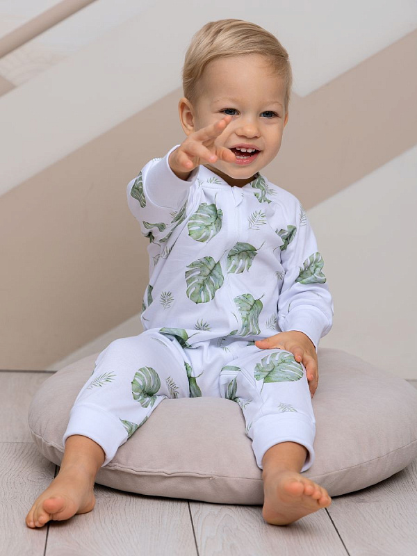 Комбинезон растущий на молнии Little Star интерлок 13016 (мз) тропики, белый 56Нет оценокХарактеристики