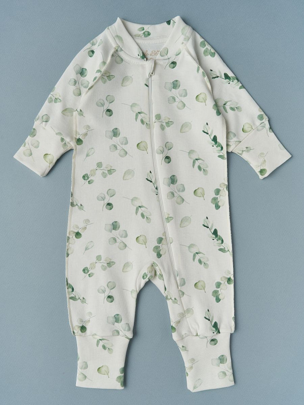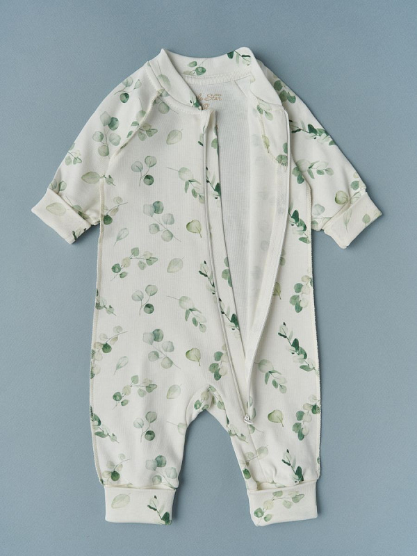 Комбинезон растущий на молнии Little Star интерлок 13016 (мз) веточки, крем 56