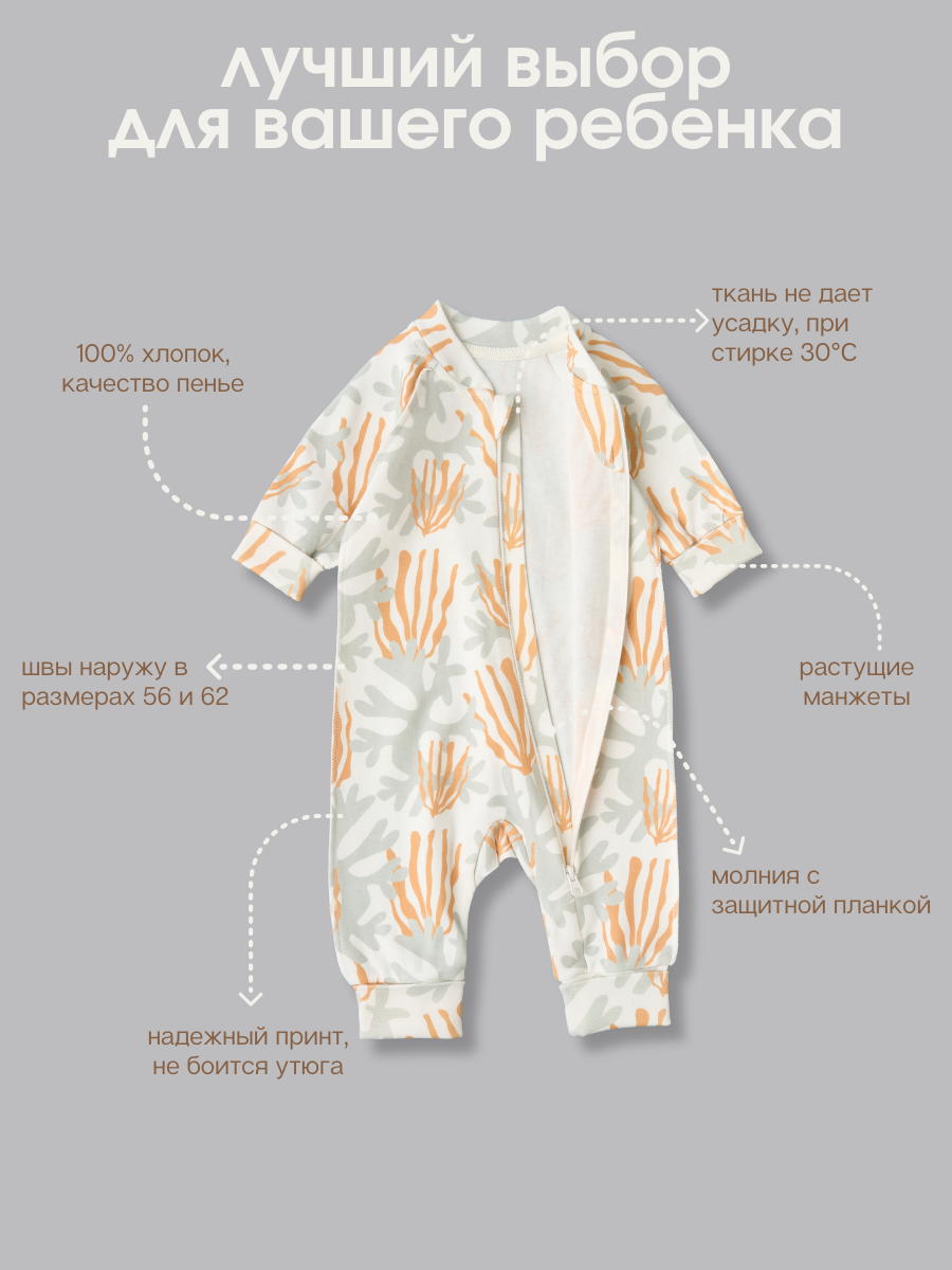 Комбинезон растущий на молнии Little Star Кораллы 13016 (ЧЗ-мз) крем 56