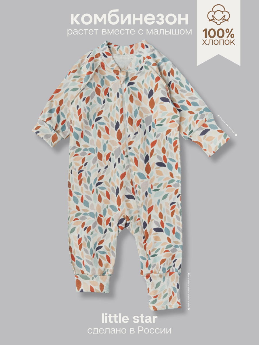 Комбинезон растущий на молнии Little Star Листочки 13016 (ЧЗ-мз) крем 62