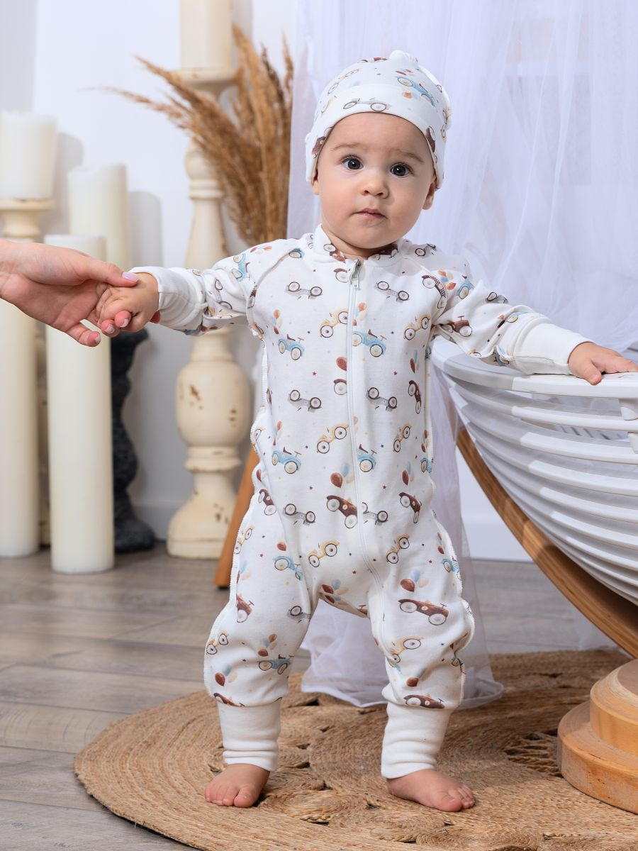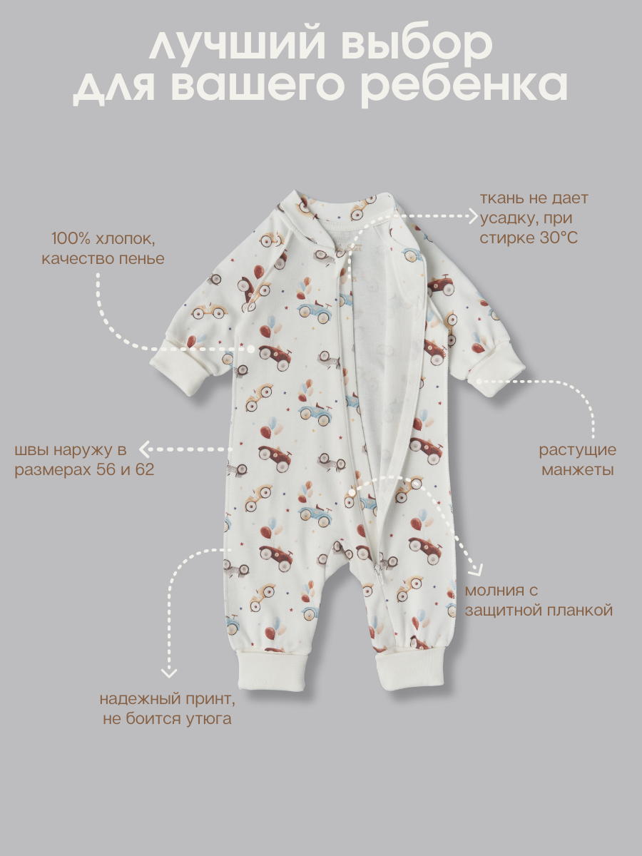 Комбинезон растущий на молнии Little Star Машинки 13016 (ЧЗ-мз) крем 56