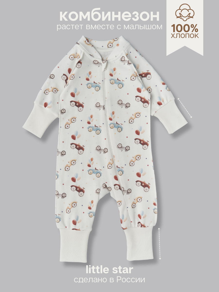 Комбинезон растущий на молнии Little Star Машинки 13016 (ЧЗ-мз) крем 62