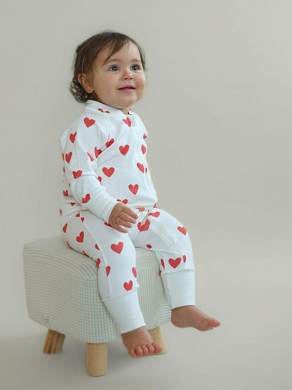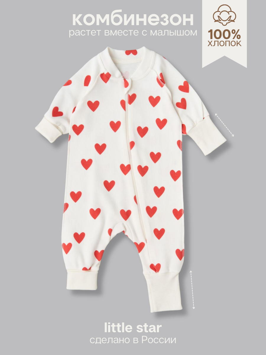 Комбинезон растущий на молнии Little Star Сердечки 13016 (ЧЗ-мз) крем 62