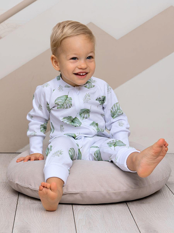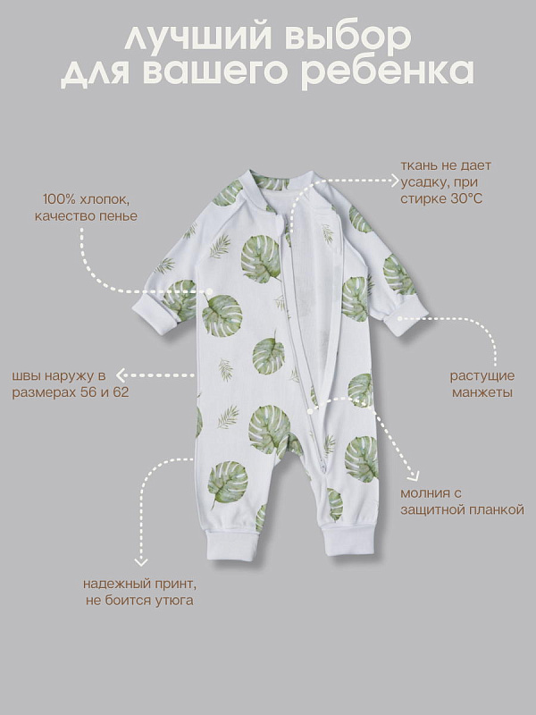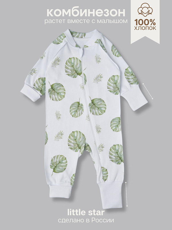Комбинезон растущий на молнии Little Star Тропики 13016 (ЧЗ-мз) белый 68